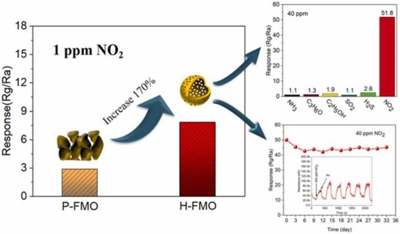 13. NO2 sensing with a part-per-billion limit of detection using Fe-2(MoO4)(3) hollow microspheres synthesized by a bubble template method, Yunfei Zhang, Jiangmei Gou, Li Chen, Ying Peng, Gaojiang Gao, Jian Bi, Jiangtao Wu,* Zhaoxiong Xie, Sens. Actuactor B - Chem. 2022, 370, 132402.