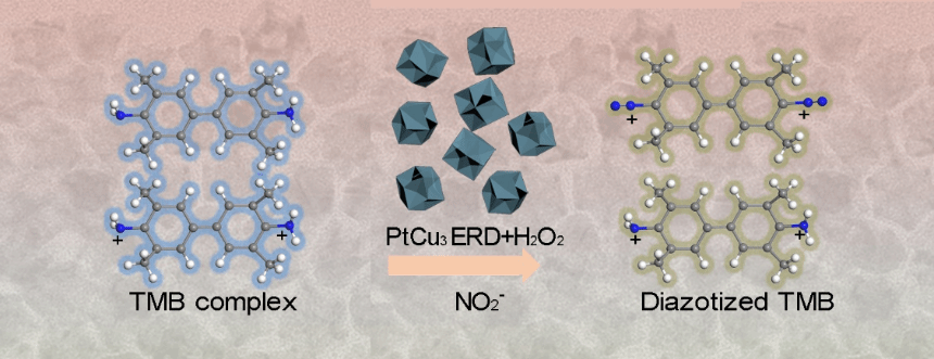 7. PtCu3 Excavated Rhombic Dodecahedral Nanocrystals with Excellent Peroxidase-Like Activity for Highly Sensitive Colorimetric Sensing of Nitrite. Yameng Xie‡, Yangzheng Xu‡, Hui Su, Zhaoxiong Xie *, Qin Kuang*. Food Chemistry, 2025, 485, 144545. (‡ equal contribution)